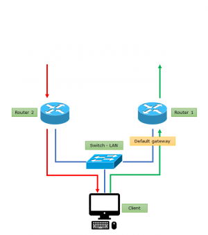 Egy eszköz route táblájában csak egy (működő) alapértelmezett átjáró lehet, ezért az aszimmetrikus route okozta problémák és anomáliák elkerülése miatt a hálózati topológiát logikailag és / vagy fizikailag mindig úgy kell szervezni, hogy egy alapértelmezett átjárón keresztül elérhető legyen az összes egyéb hálózat és szolgáltatás.