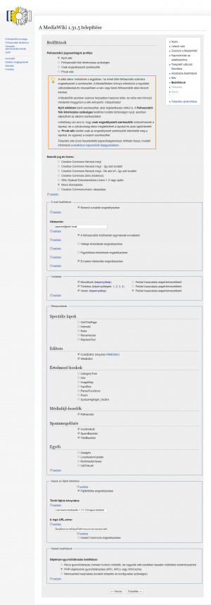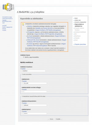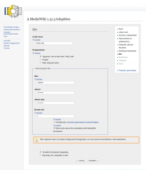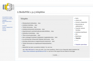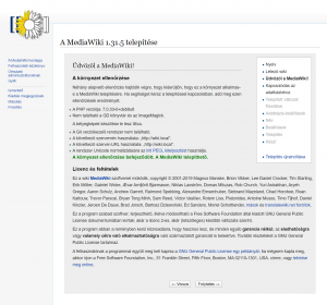 A leírás a Mediawiki 1.31 LTS kiadásának telepítését mutatja be. A leírásban szereplő url-ek alverziónként változnak, ezeket módosítani kell.