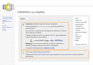 A letöltött LocalSettings.php fájlt a /var/www/mediawiki/ könyvtárba kell másolni.