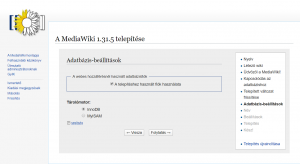 A mediawiki telepítése böngészőben, a beállított domain használatával folytatható. pl: https://mydomain.com